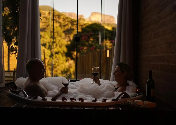 The 1-bedroom Chale Romantico, Lareira, Jacuzzi-Vista Pedra Bau - Chale Petra Sao Bento do Sapucai villa is located 4.5 km from the Mountain Fishing Ecopark and provides a hot tub.